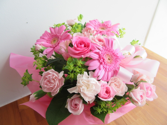 | 花材 | メイン ガーベラ スプレーバラ スプレーカーネーション グリーンの小花 |