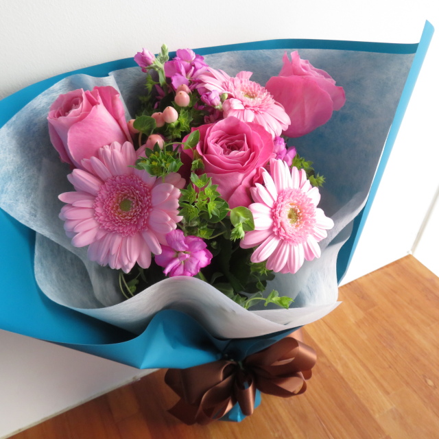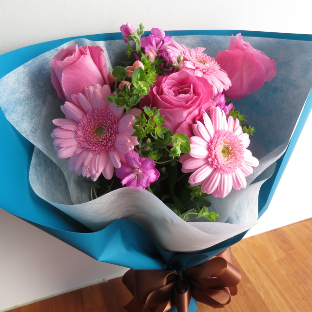 ピンク系のお花でまとめた春の花束です。