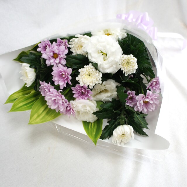 哀悼の意を込めた白い菊を中心にシンプルな花束です。
