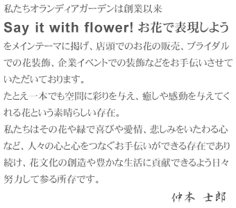 | 事業内容 | 生花販売、園芸業、冠婚葬祭全般 |